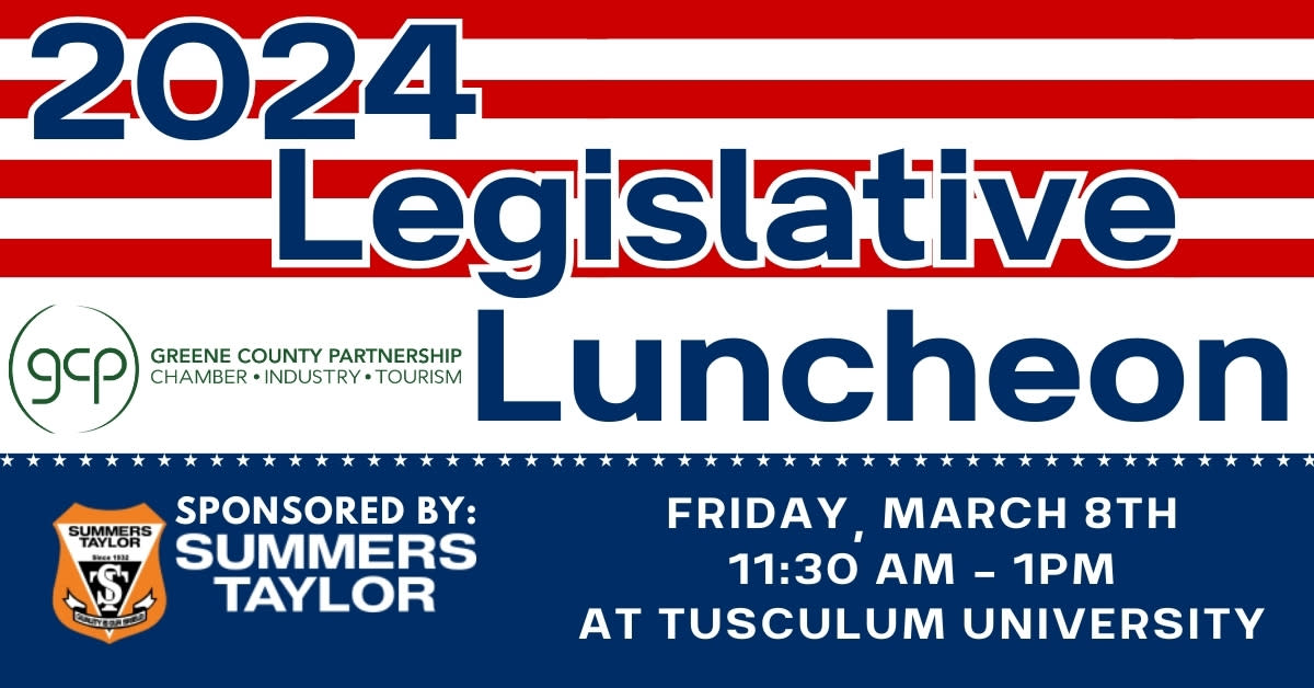 Please join us for the Greene County Partnership Legislative Luncheon. You will have an opportunity to discuss with legislators current political issues facing our community and state.